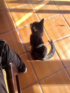 Currently I am sitting on the sun porch enjoying a leisurely breakfast, looking out over the pool. As I look down, here is Miss Elsie the Cat sitting by my leg and watching all the back yard activity. This house is huge, she could be anywhere, yet there she is hanging by my leg. I like to think we are both enjoying a moment of companionship. This alone is a very good birthday moment. I am glad for this little cat who has adapted to a nomadic life.
