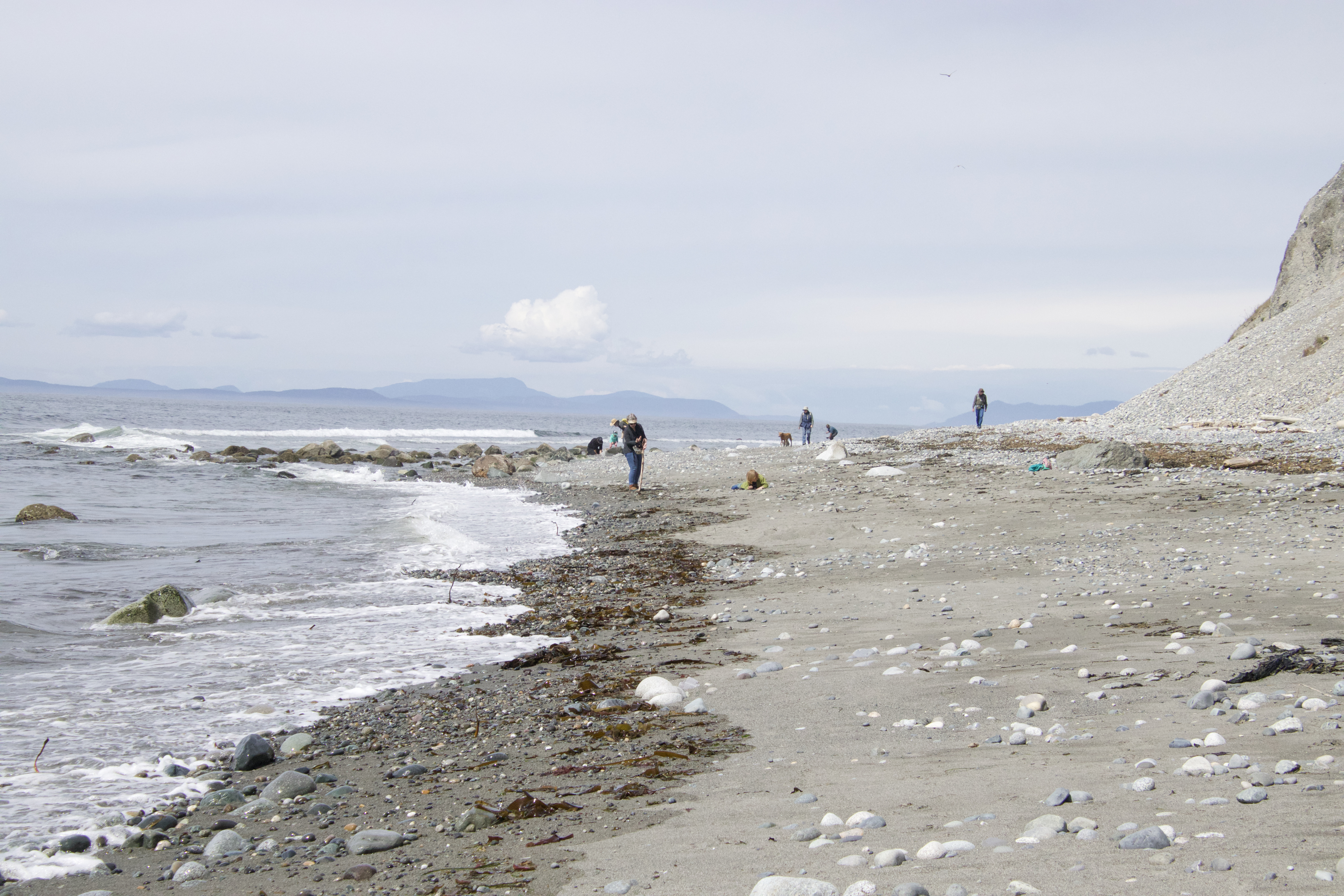 On a beautiful day I saw Mt Baker on the mainland, in Washington State. The beaches are like the beaches in Washington, Plenty of drift wood was scattered along the beach. The beaches are rocky and wild.